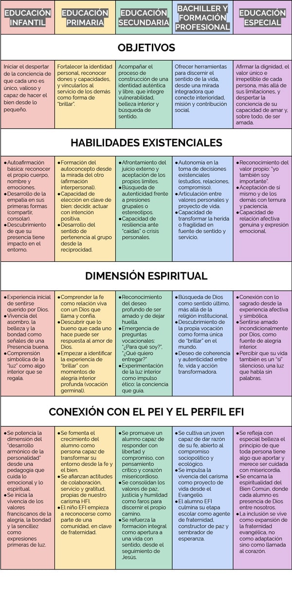Este lema se convierte en una clave transversal que atraviesa todos los ámbitos del quehacer educativo y pastoral, en coherencia con nuestro Proyecto Educativo Institucional y con el perfi l del alumno y alumna EFI.